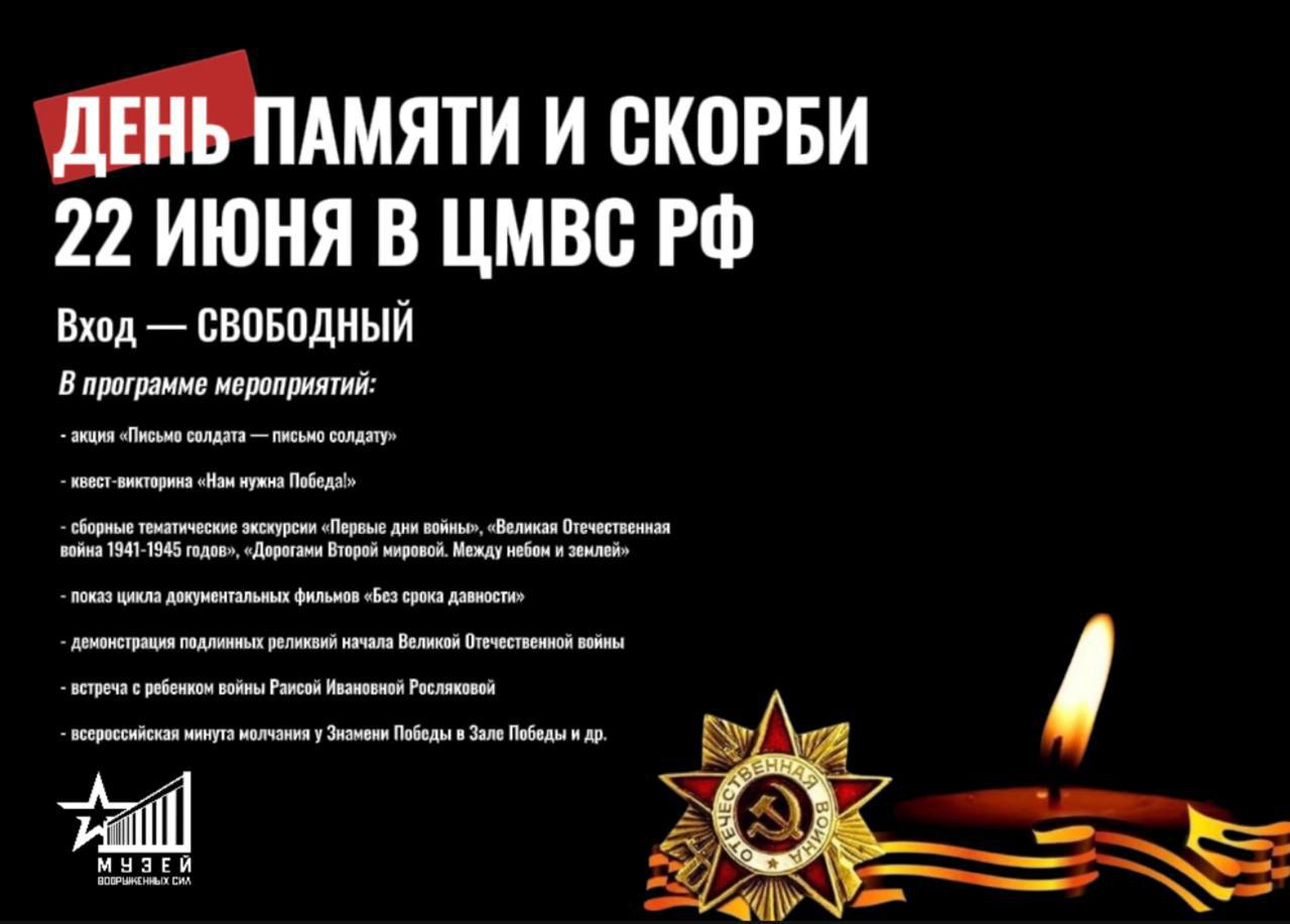 22 июня в ЦМВС РФ пройдет День памяти и скорби.