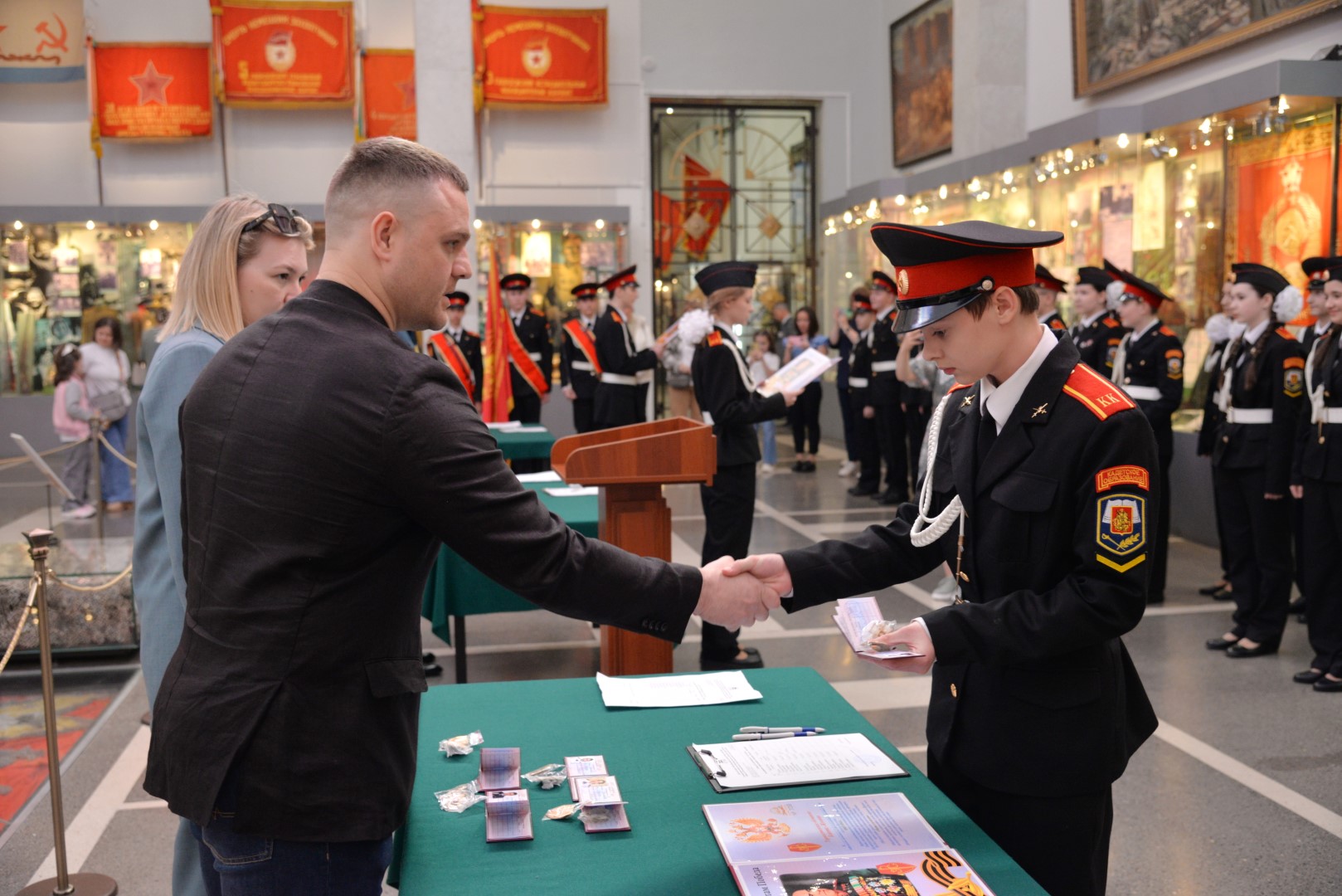 Традиционные торжественные церемонии «Клятва кадета» стали привычными для музея, но каждый раз они по-своему волнительны. 21 мая воспитанники 7-10 классов школы №709 имени дважды Героя Социалистического Труда В.И. Долгих влились в ряды тех, кто поклялся горячо любить свою Родину, свой народ, быть преданным своему Отечеству... После торжественных слов присяги каждому было вручено удостоверение кадета.