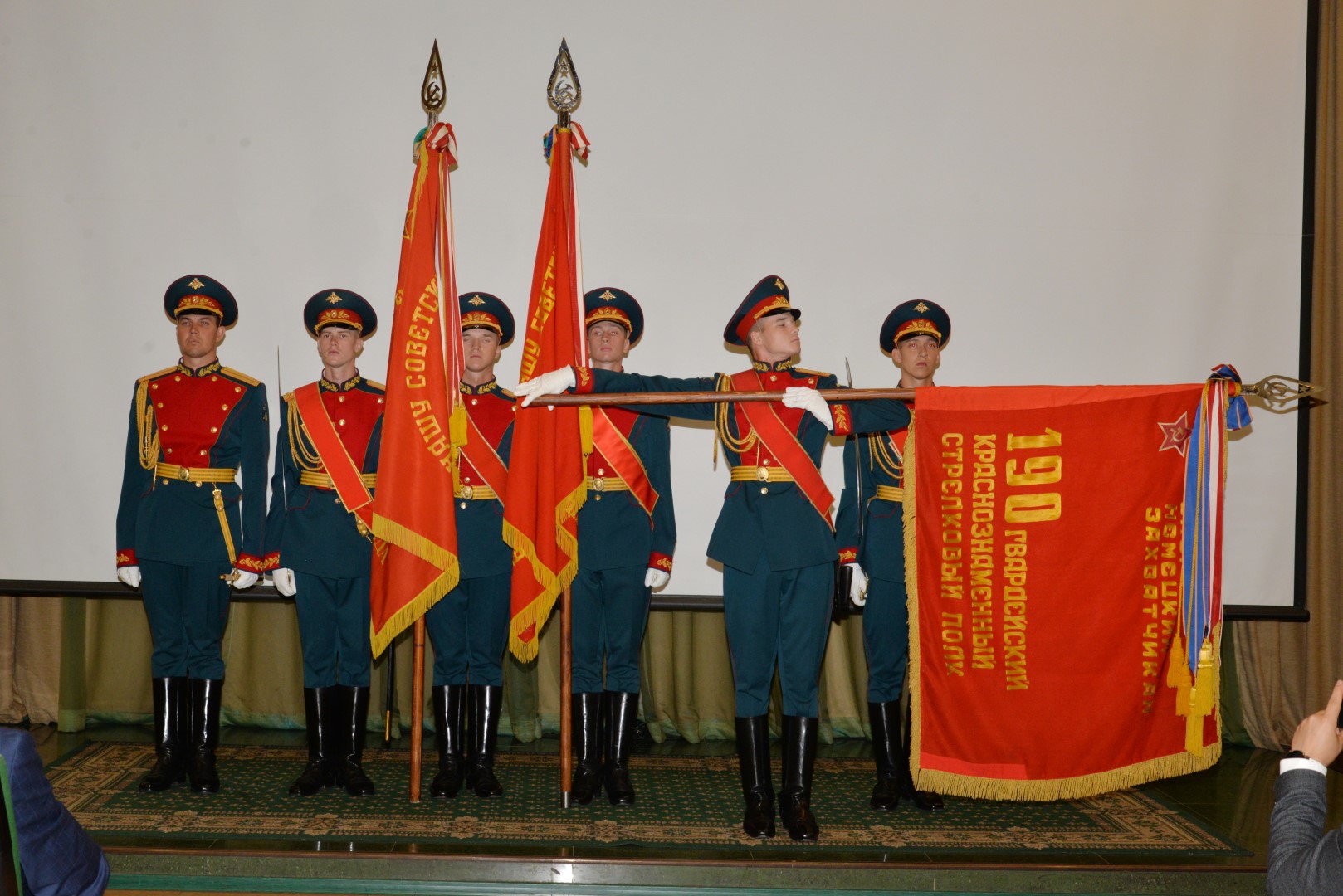 Сегодняшнее мероприятие в нашем музее началось с торжественного вноса и представления боевых знамен, учувствовавших в Параде Победы на Красной Площади 24 июня 1945 года. После открытия форума состоялся «круглый стол».