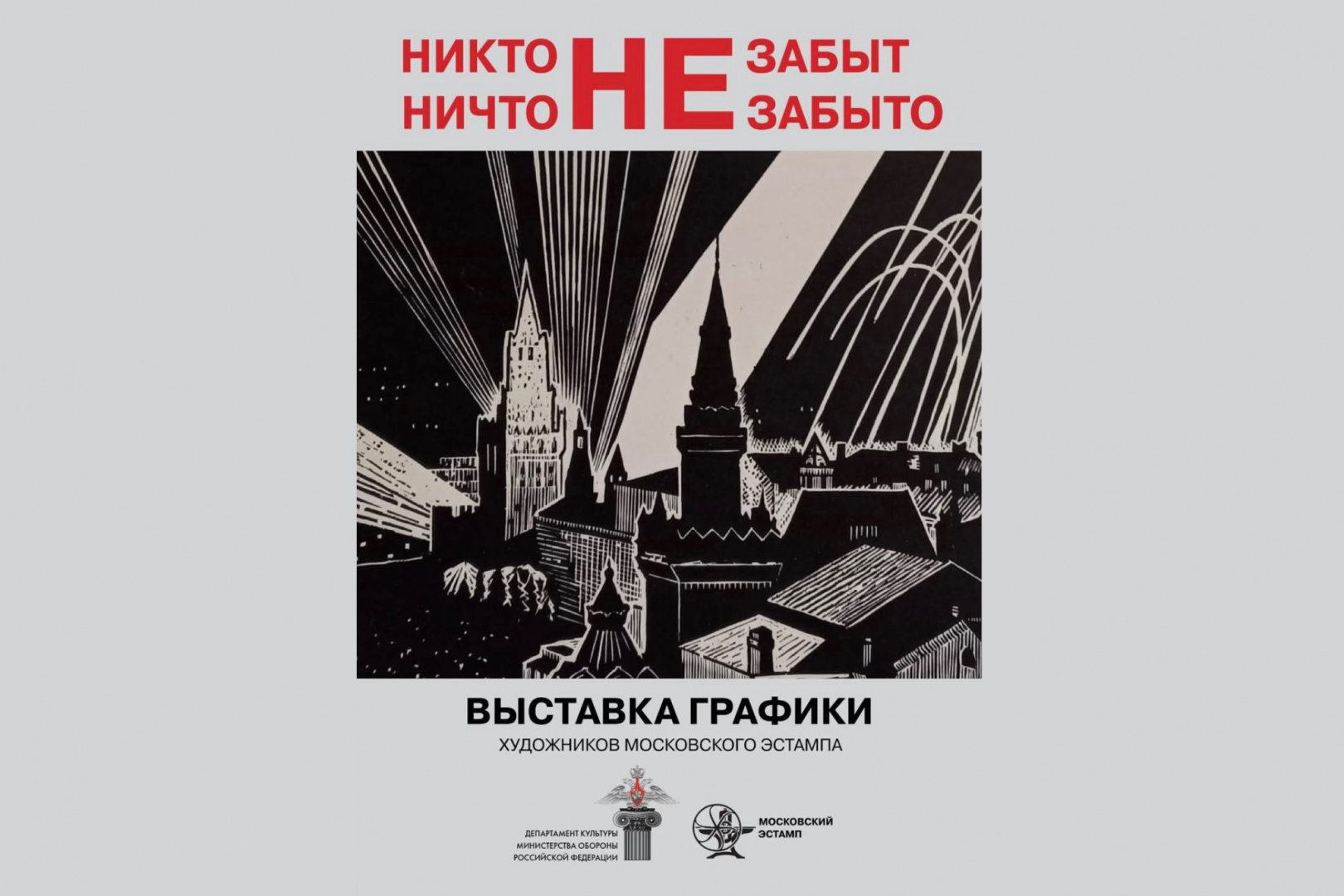 В рамках концерта «Поклонимся великим тем годам…» в воскресенье, 21 сентября, с 14:00 до 15:00 пройдет выставка графики художников Московского эстампа «Никто не забыт, ничто не забыто».
