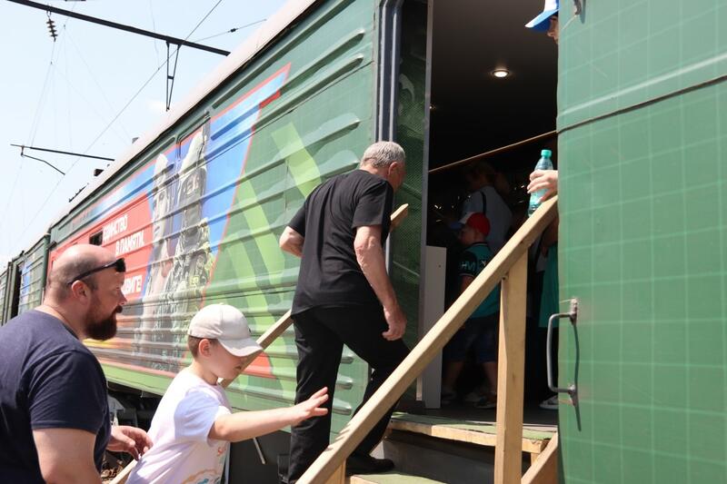 Подвижной состав с нашей выставкой в рамках акции «Единство в подвиге. Сила в правде!» побывал также в Омске, Тюмени, Екатеринбурге и Перми. Мероприятия на перронах за эти дни посетило более 35 тысяч человек. Это были и представители местных органов власти, и гости городов. Как передают наши коллеги, в Омске среди посетителей был даже известный исполнитель, лидер группы «Любэ» Николай Вячеславович Расторгуев.