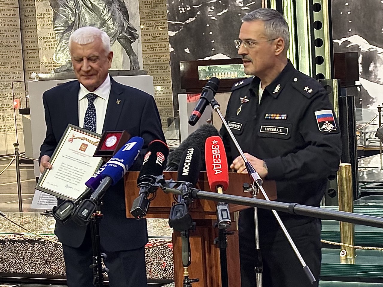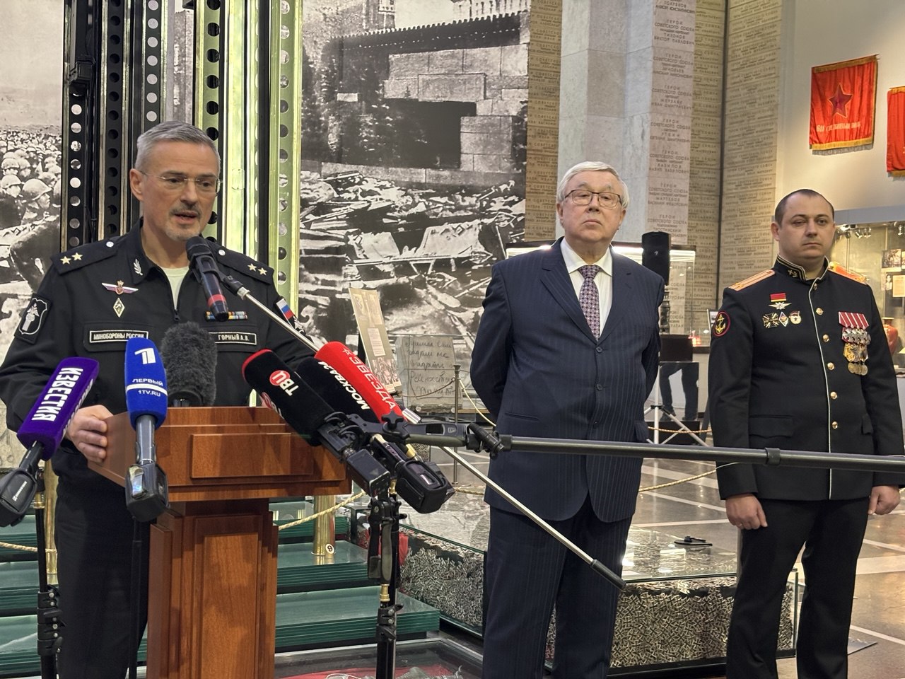 Перед гостями выступили директор ЦМВС РФ Александр Константинович Никонов, директор Департамента культуры Минобороны России Артем Владимирович Горный, сын адмирала флота Николая Ивановича Смирнова профессор кафедры системного анализа ВМК МГУ Сергей Николаевич Смирнов и заместитель командира 810-й бригады морской пехоты гвардии подполковник Иван Васильевич Комаров. Экспозицию о Вооруженных Силах СССР в послевоенный период (1946-1991 гг.) представил заместитель директора музея по экспозиционно-выставочной работе Владимир Витальевич Лукин.