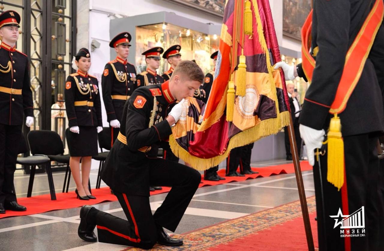 В ходе мероприятия юные выпускники-жуковцы выразили свое уважение к Знамени, после чего передали его новому поколению кадетов.