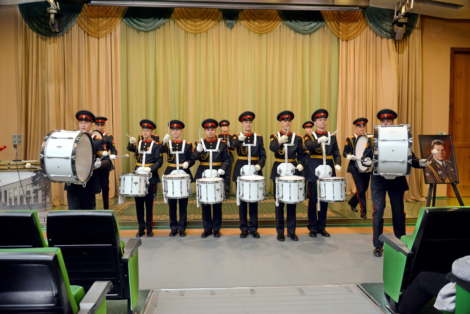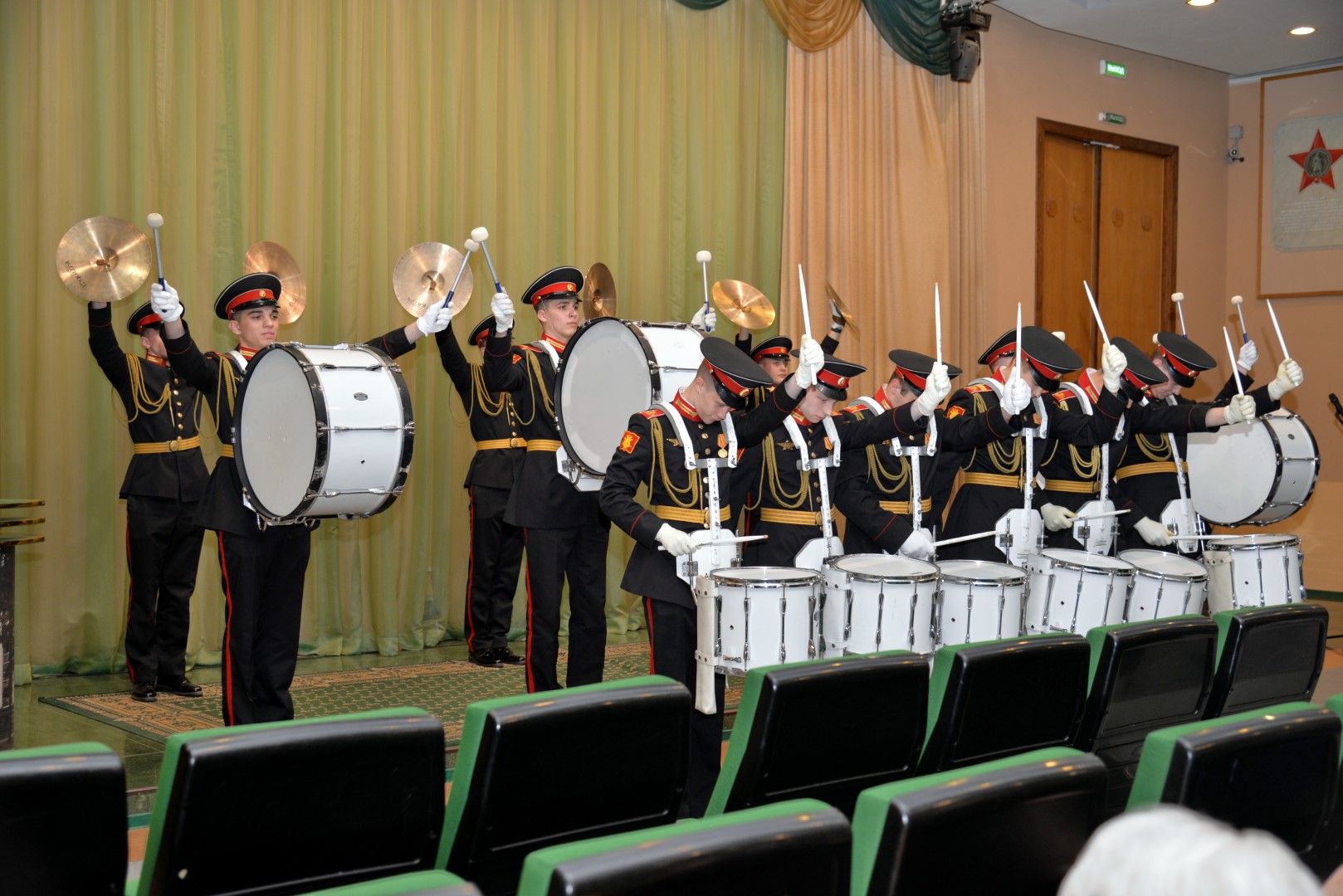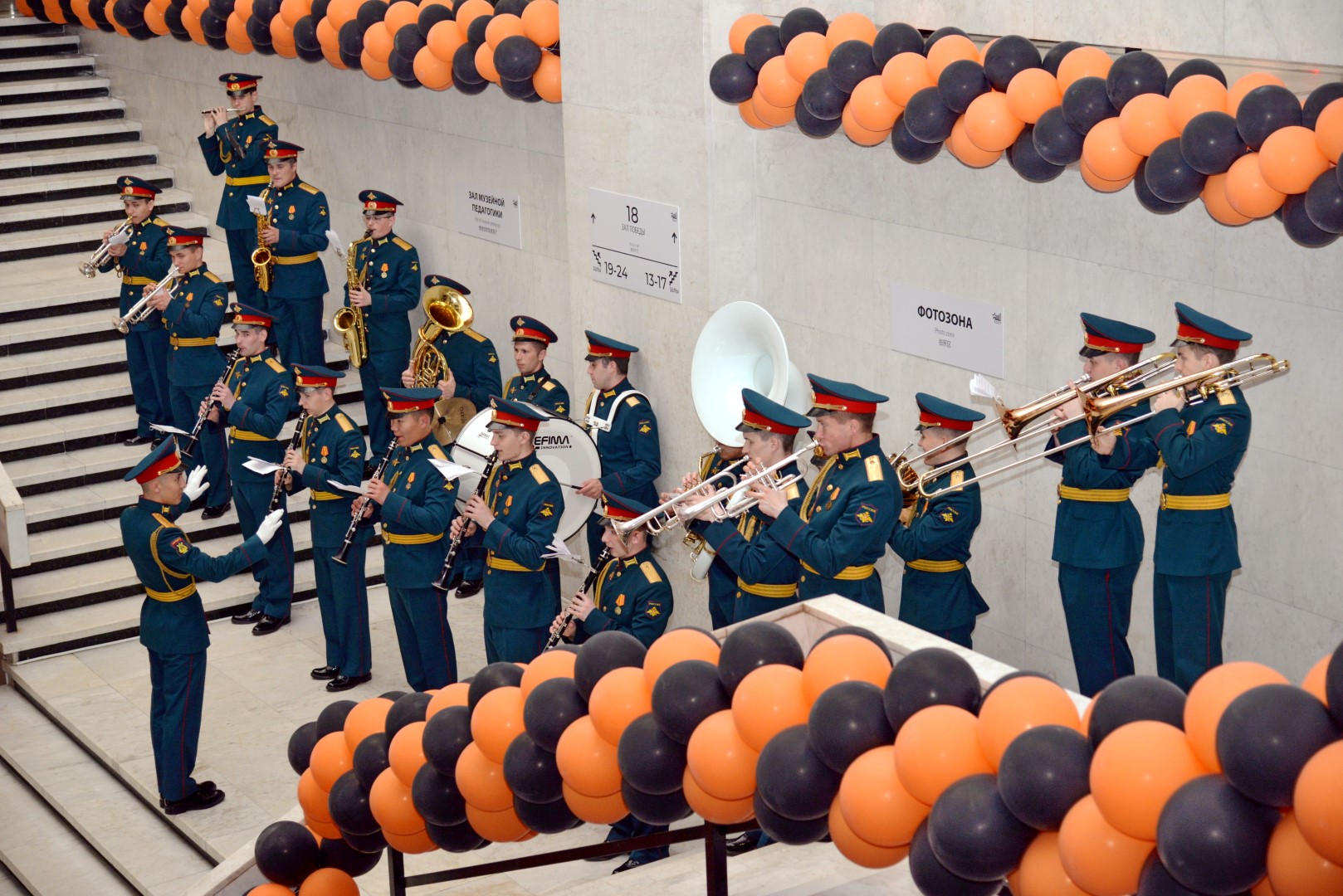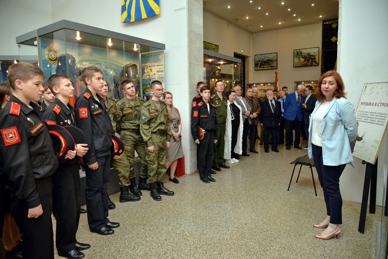 Вчера в музее состоялось торжественное открытие выставки, посвященной первому Главному дирижеру Военно-оркестровой службы Вооруженных Сил Российской Федерации генерал-лейтенанту Виктору Васильевичу Афанасьеву. На церемонии присутствовали вдова маэстро Ольга Валентиновна Афанасьева, сын - Сергей Викторович Афанасьев, заместитель начальника оркестровой службы Вооруженных сил Российской Федерации - полковник Саков Сергей Владимирович, ветераны службы. Украшением торжества стало выступление ансамбля барабанщиков-суворовцев «Фиеста» Московского Военно-музыкального училища имени генерал-лейтенанта Валерия Михайловича Халилова.