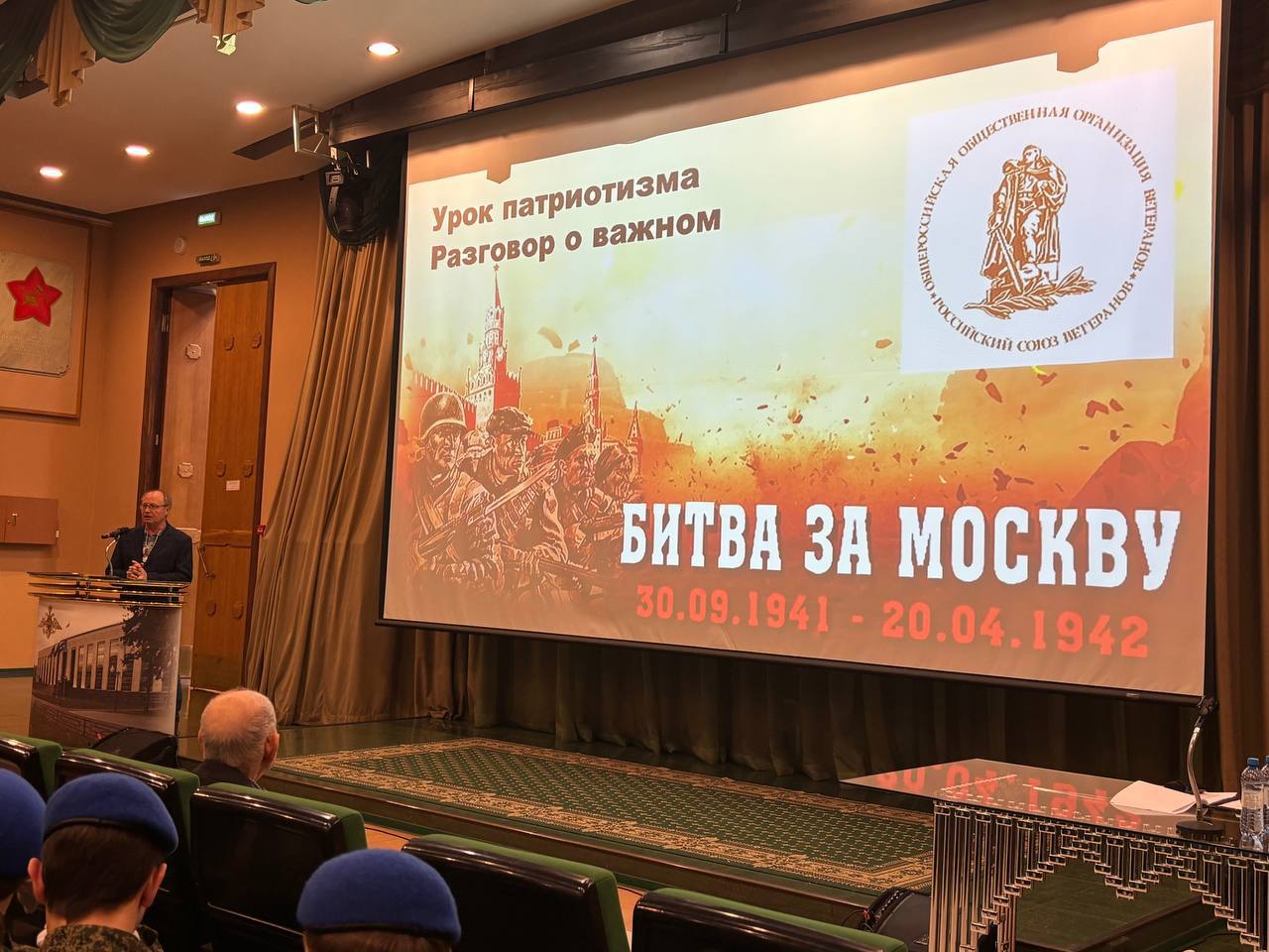 Встреча прошла в рамках проекта «Разговор о важном» Общероссийской общественной организации «Российский союз ветеранов». На ней присутствовало порядка 100 юнармейцев и учащихся московских школ — кадетской школы № 1784 имени генерала армии В. А. Матросова, Гимназии Российского университета транспорта (РУТ (МИИТ)), школ №№2120, 760, 1529 и других.