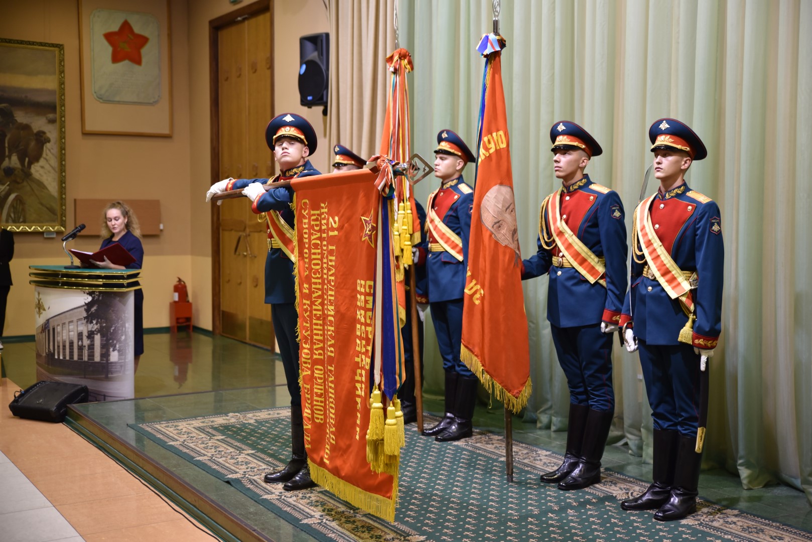 В зале собрались курсанты военных вузов Москвы, кадеты, юнармейцы, школьники столицы и области. Встречу открыл директор музея Александр Никонов, затем были представлены Боевые знамена из коллекции ЦМВС РФ, а в конце - демонстрационный рассказ и показ массогабаритных макетов советского, американского и японского оружия периода Второй мировой войны (эти предметы можно было даже подержать в руках).
