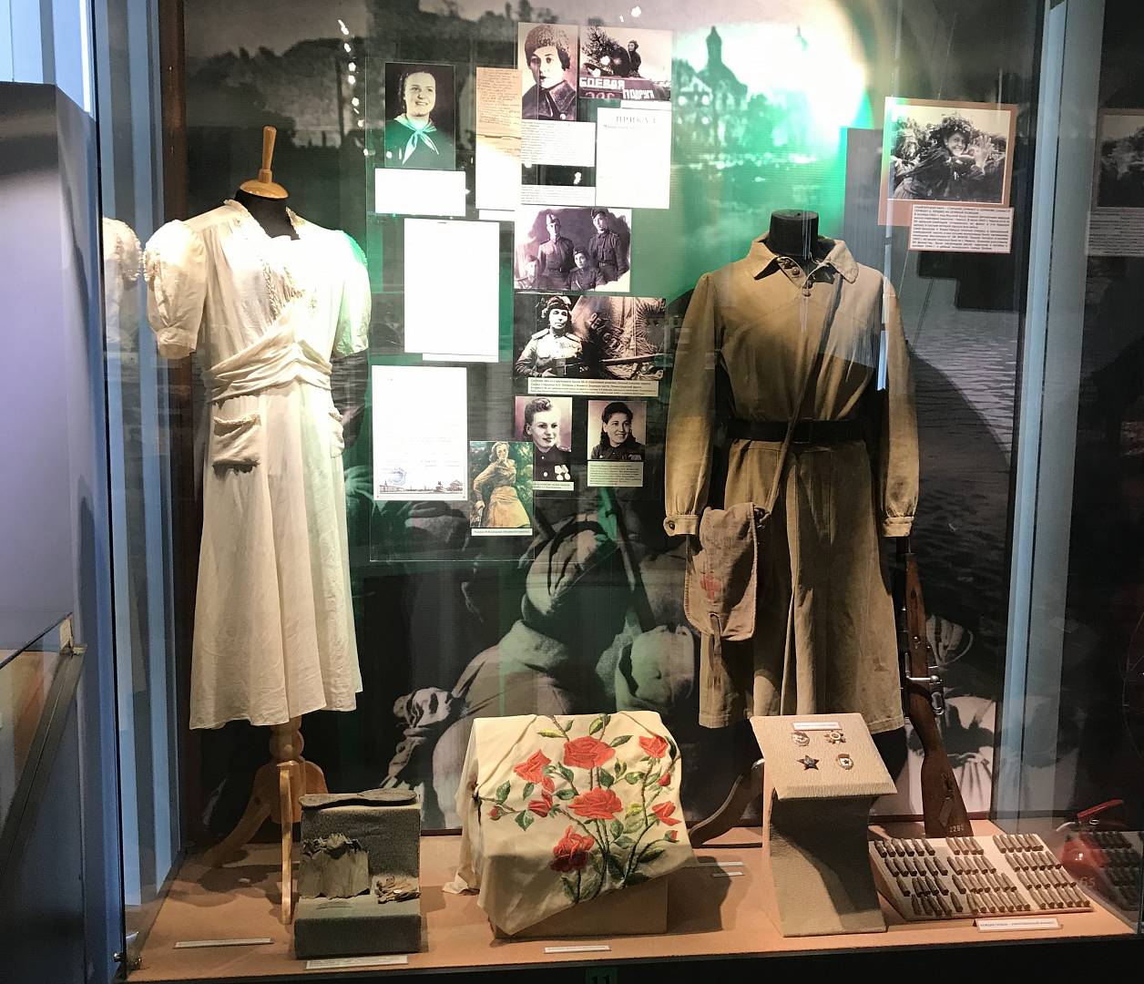 Посетители узнают о роли женщин в военной истории нашей страны. Экскурсовод расскажет о том, какие войны вели русские императрицы, о женщинах семьи Романовых, которые были шефами полков, о женщинах-революционерках, о первых женщинах, представленных к высшей воинской награде СССР – званию Героя Советского Союза. В залах музея экскурсанты увидят фотографии и личные вещи знаменитых «ночных ведьм» - лётчиц женского ночного бомбардировочного полка. В ходе экскурсии представится возможность оценить вклад женщин-танкистов и женщин - медиков в Победу над немецко-фашистскими захватчиками.