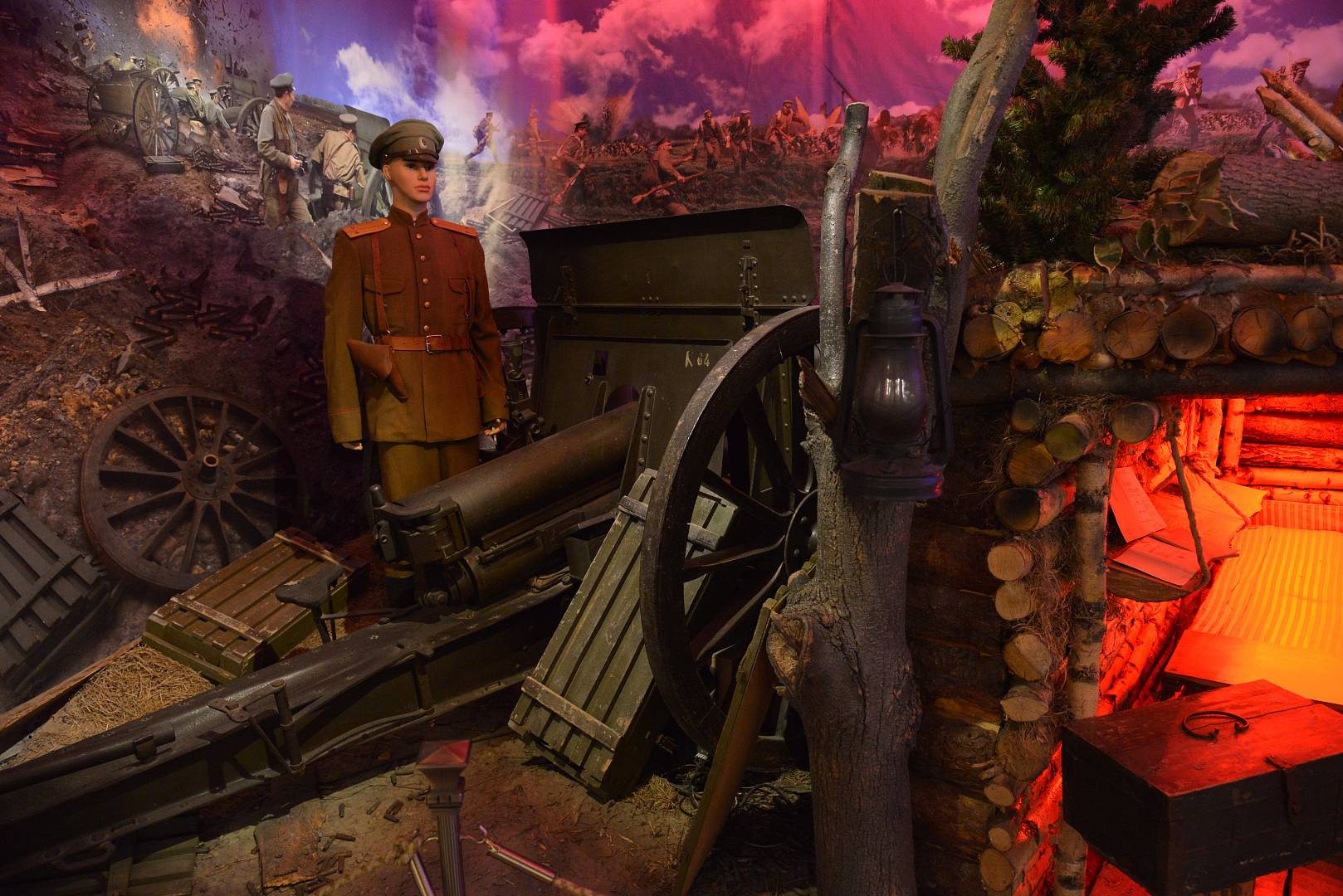 Вместе с экскурсоводом посетители увидят крупнейшую в Москве экспозицию, посвященную Первой мировой войне, и ряд интересных экспонатов, которые не оставят равнодушными: Георгиевское оружие генерала Антона Ивановича Деникина, первый в мире автомат, созданный русским конструктором Владимиром Федоровым, единственную сохранившуюся почетную саблю с линкора «Императрица Мария». Большое впечатление произведёт диорама с полномасштабной реконструкцией фрагмента траншейной системы полей сражений Первой мировой войны, впервые ставших повсеместным атрибутом, определяющим характер и облик массовых и опустошительных войн ХХ века.