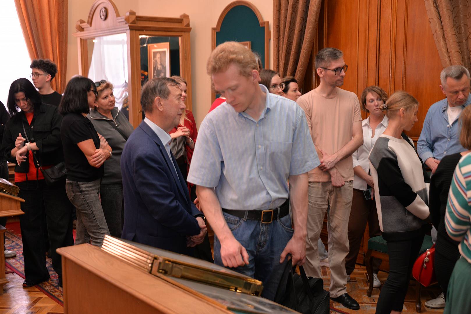 Среди участников были не только кадеты и представители Комитета памяти Маршала Советского Союза Г. К. Жукова, но и наши коллеги. В этот день они познакомились с экспозицией кабинета-музея и узнали историю старинного особняка, где в 1955-1957 годы Георгий Константинович трудился на посту министра обороны. Гостям также представили электронную выставку «Маршал Советского Союза Г.К. Жуков — министр обороны СССР. Основные направления деятельности».