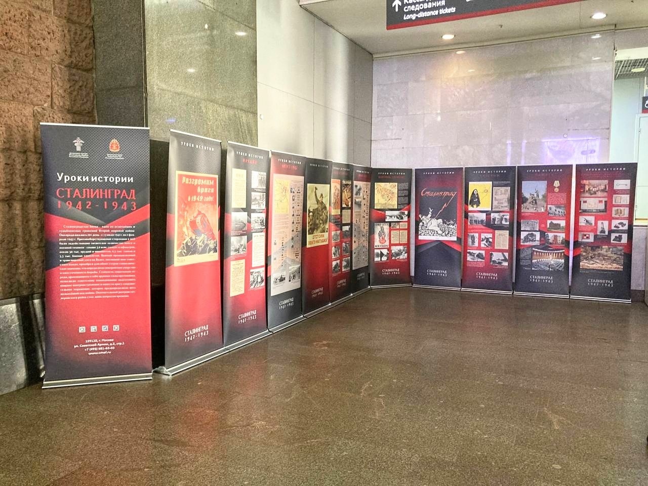 Увидеть баннеры с историческими материалами можно на Белорусском, Киевском, Ленинградском и Павелецком вокзалах. Для москвичей и гостей столицы представлены передвижные выставки «Великая Победа», «Уроки истории. Курская битва. 1943», «Уроки истории. Ленинград. 1941-1944» и «Уроки истории. Сталинград. 1942-1943». Баннеры содержат информацию о ключевых событиях Великой Отечественной войны, а также фотодокументальные материалы из фондов ЦМВС РФ.