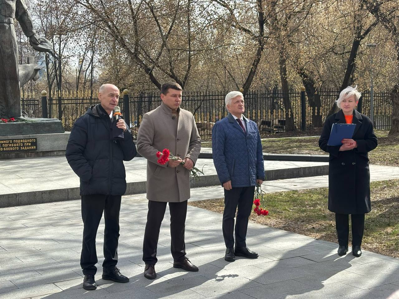 7 апреля жители Мещанского района, школьники и почетные гости мероприятия возложили цветы к мемориалу, который посвящен атомному подводному крейсеру «Курск»