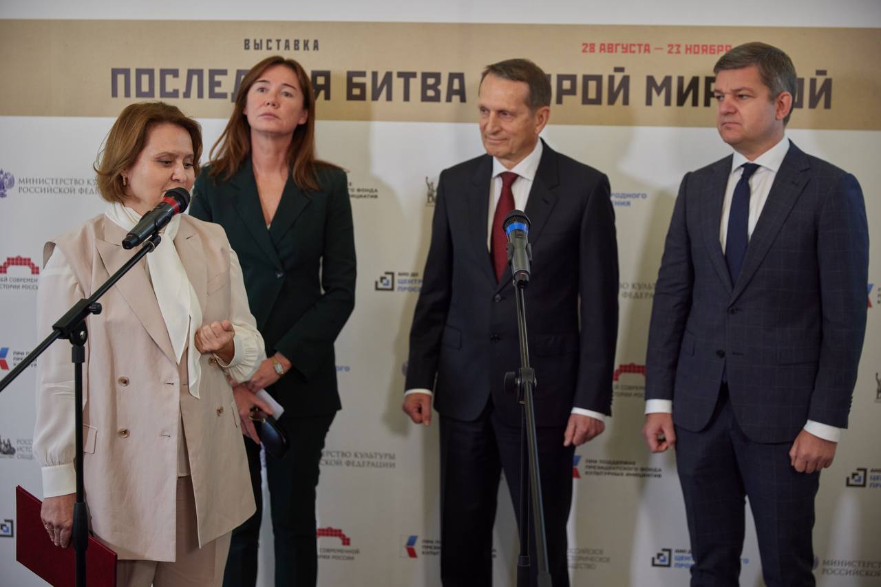 В церемонии открытия участвовали председатель Российского исторического общества Сергей Евгеньевич Нарышкин, генеральный директор Музея современной истории России Ирина Великанова, директор департамента музеев и поддержки циркового искусства Министерства культуры РФ Елена Харламова, генеральный директор Президентского фонда культурных инициатив Роман Карманов, директор ЦМВС РФ Александр Константинович Никонов.