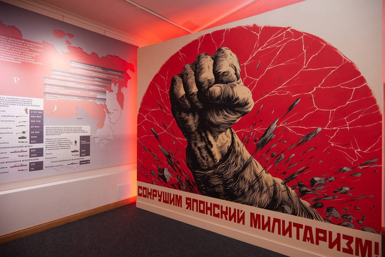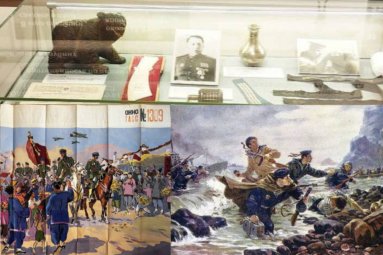 Наш музей предоставил на выставку подарки генералу армии Пуркаеву Максиму Алексеевичу, который командовал 2-м Дальневосточным фронтом. Например, большой интерес у гостей церемонии вызвала деревянная фигурка медведя от айнов — благодарных жителей острова Сахалина. Кроме того, посетителей привлекли плакат «Окно ТАСС № 1309 "Сдалась японская военщина, манчжурский край освобожден..."» из серии агитационных плакатов «Окна ТАСС» авторства А. А. Пржецлавского и картина «Десант на Курильские острова» А. И. Плотнова. Увидеть эти и другие артефакты вы сможете до 23 ноября в главном здании ГЦМСИР.
