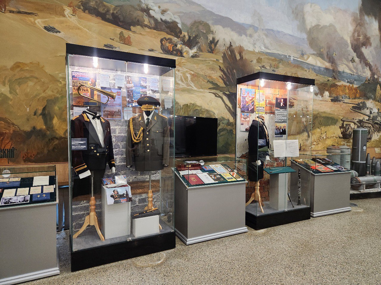 Вчера в музее состоялось торжественное открытие выставки, посвященной первому Главному дирижеру Военно-оркестровой службы Вооруженных Сил Российской Федерации генерал-лейтенанту Виктору Васильевичу Афанасьеву. На церемонии присутствовали вдова маэстро Ольга Валентиновна Афанасьева, сын - Сергей Викторович Афанасьев, заместитель начальника оркестровой службы Вооруженных сил Российской Федерации - полковник Саков Сергей Владимирович, ветераны службы. Украшением торжества стало выступление ансамбля барабанщиков-суворовцев «Фиеста» Московского Военно-музыкального училища имени генерал-лейтенанта Валерия Михайловича Халилова.